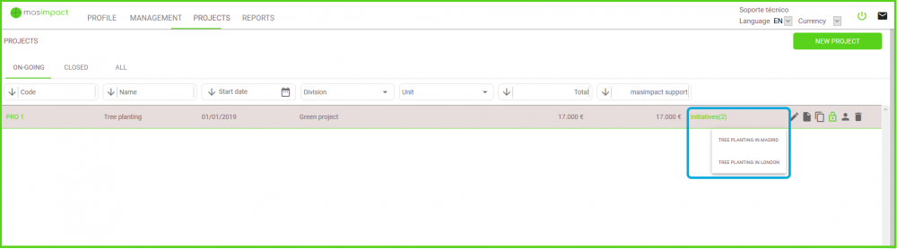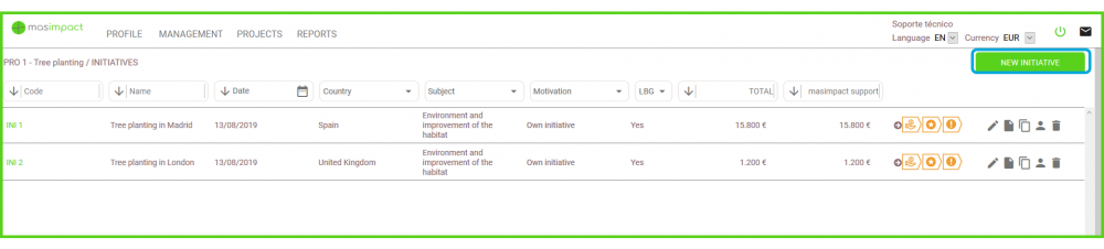 This sections allows the user to define what the initiative is, i.e what the activity consists of. The description field allows the user to explain the specific objectives to be met by the initiative. Each Initiative, like the projects, has a unique code. When an initiative is deleted, the code is also deleted and the following initiatives that are created will adopt the subsequent numerical codes.Start and end dates