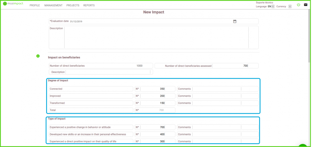 In order to measure the degree or depth of the impact on people, you must first answer the following question:From the total number of beneficiaries, how many have been evaluated?