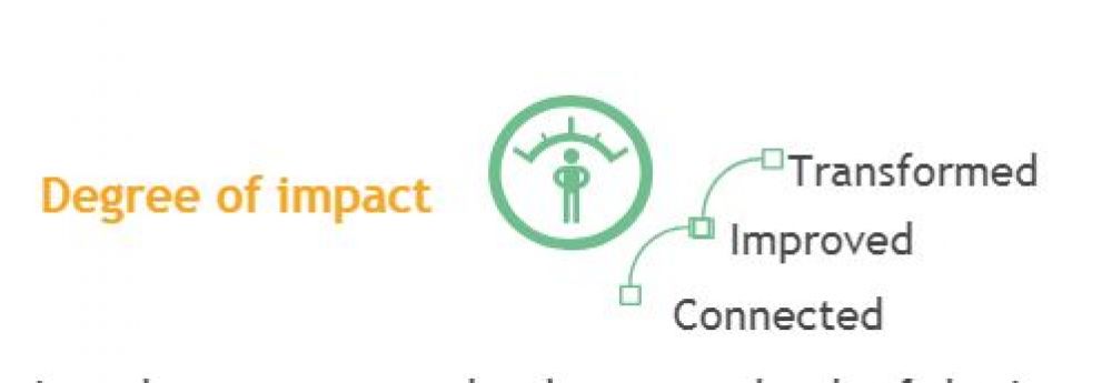 - Connected: Beneficiaries have simply been sensitised to the intervention but have not achieved an improvement. In many cases awareness raising is the objective of the initiative or project.