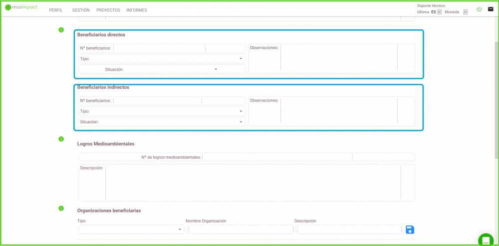 Son aquellas personas que se han visto beneficiadas de forma indirecta por la iniciativa. Aunque estas personas han obtenido algún tipo de beneficio con la iniciativa, no han sido objetivo del cambio buscado. Por ejemplo: en una iniciativa de educación, los beneficiarios indirectos podrían ser los formadores contratados o los familiares de los beneficiarios directos.Podrás indicar: