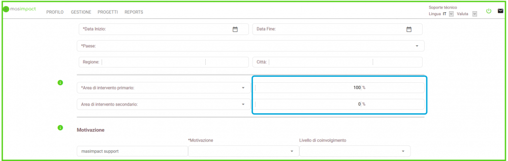 Quindi, se un'iniziativa mira ad apportare miglioramenti nel campo dell’istruzione, ma anche in quello della salute, si potrà attribuire all’area primaria “Istruzione (50%)” e all’area secondaria “Salute (50%)”.