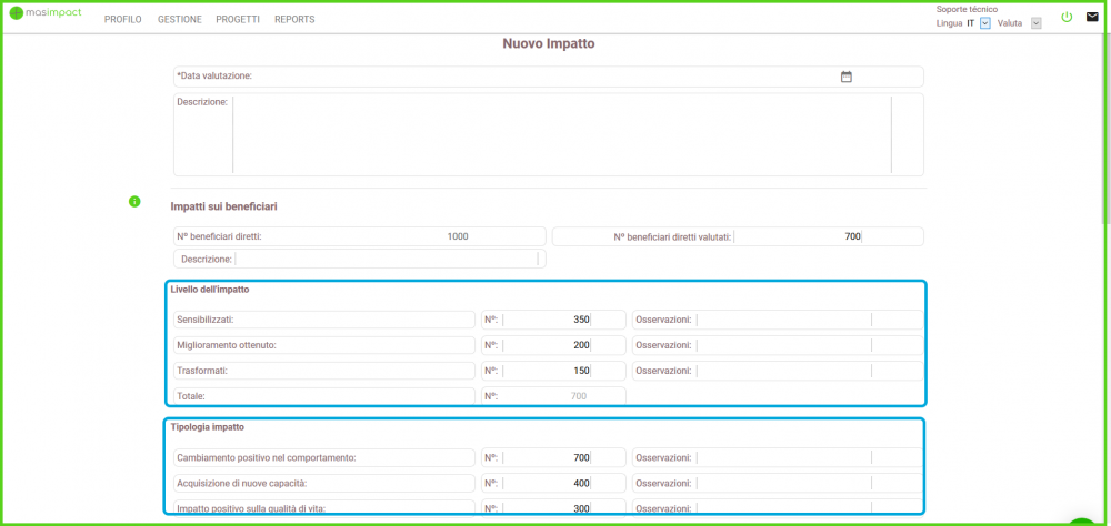 - Miglioramento ottenuto: quando l'iniziativa o il progetto ha portato a un miglioramento delle abitudini, delle abilità o delle conoscenze delle persone.