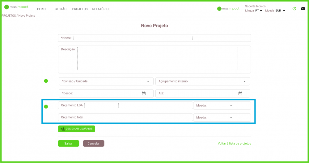 Nesta seção pode estabelecer o orçamento previsto para a implementação do projeto pela entidade e o orçamento total: tendo em conta o orçamento da entidade e o orçamento de outros colaboradores que se espera que contribuam para o projeto.