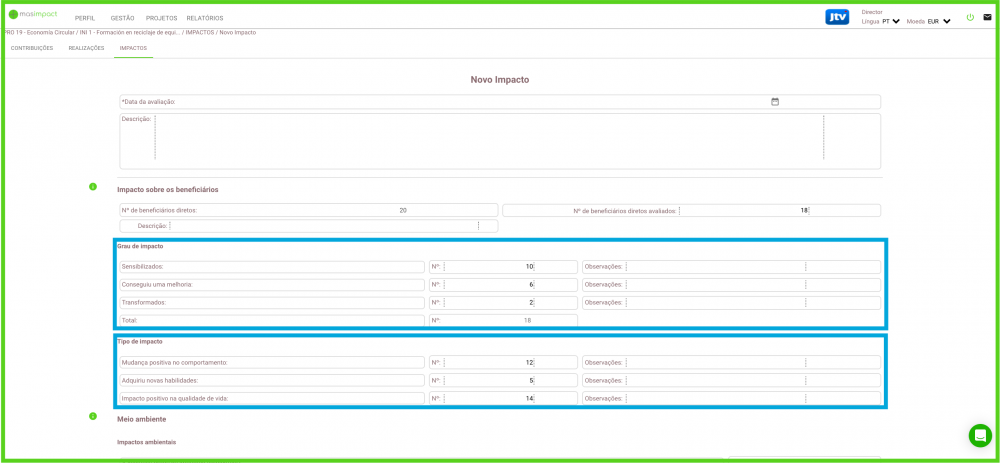 Uma pessoa pode conhecer vários tipos de impacto, portanto, um único beneficiário pode ser incluído em várias categorias. Neste caso, para evitar a dupla contagem dos beneficiários, os totais das três categorias não devem ser somados, mas relatados separadamente.