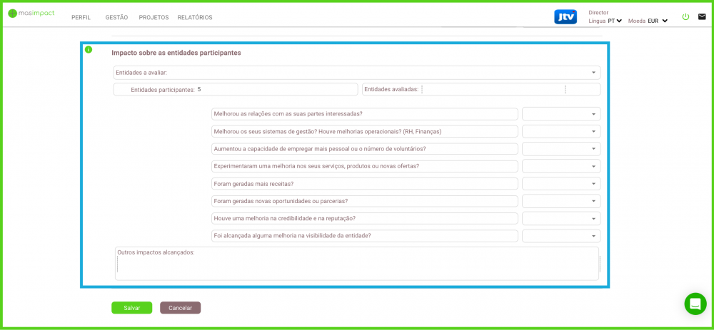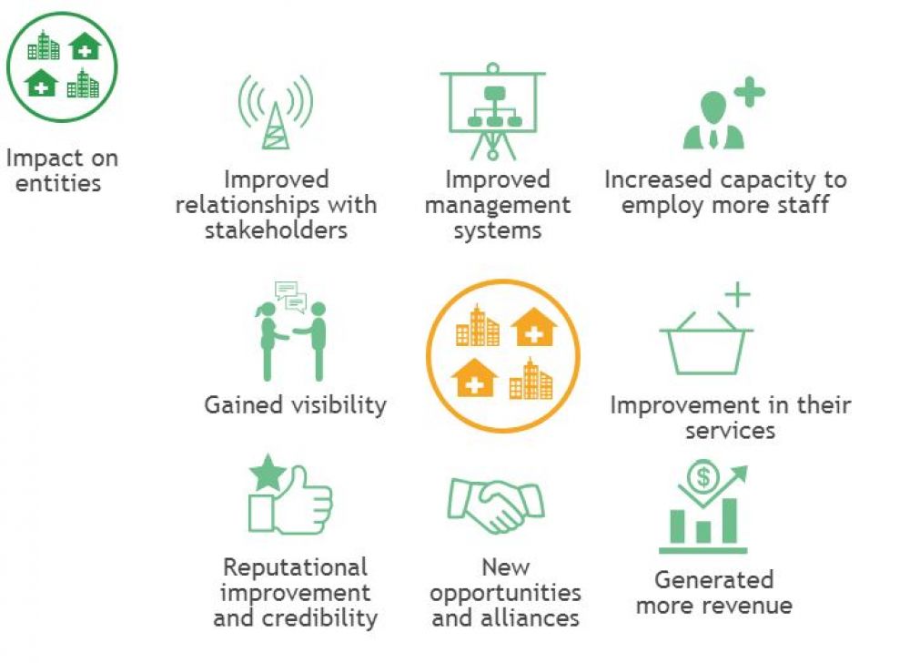 Os benefícios para as entidades avaliadas (a própria entidade implementadora do projeto, os colaboradores ou as organizações beneficiárias) podem ser de vários tipos: