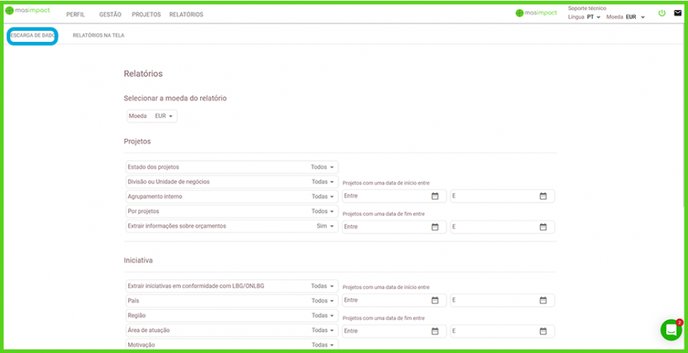 - Impactos: onde coleta informações sobre projetos, iniciativas e impactos